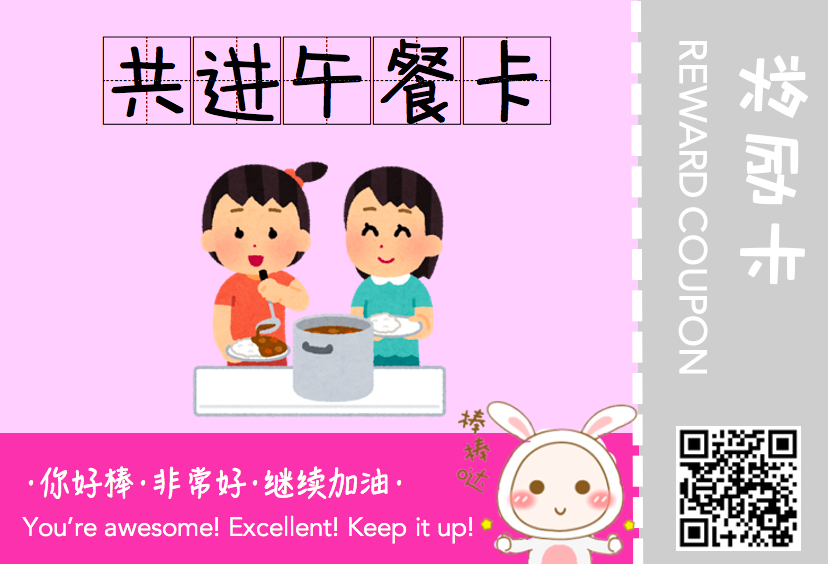 这张奖励卡对低年级的孩子们比较有诱惑力,高年级的孩子们可能会觉得这奖励是一种惩罚。( ̄▽ ̄").